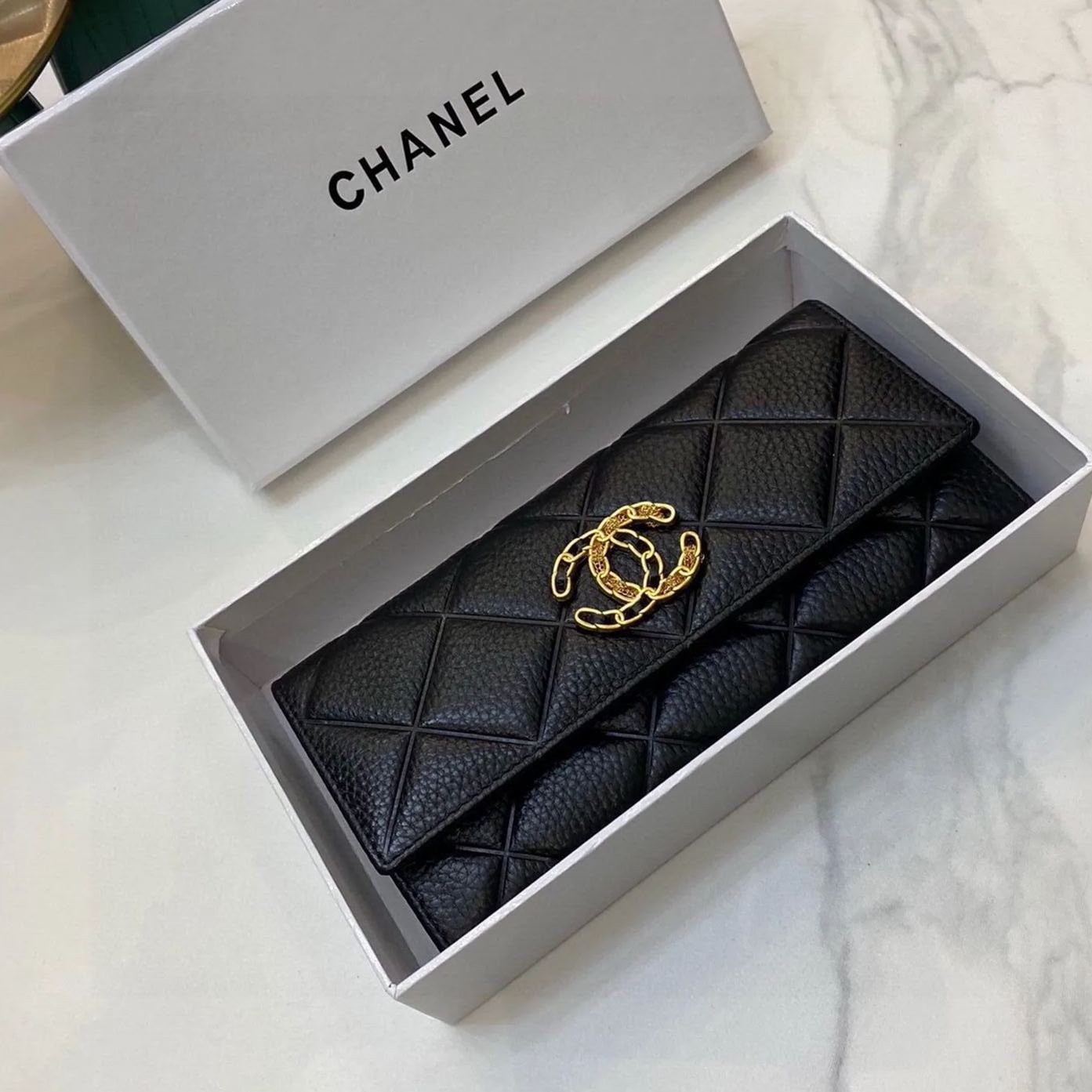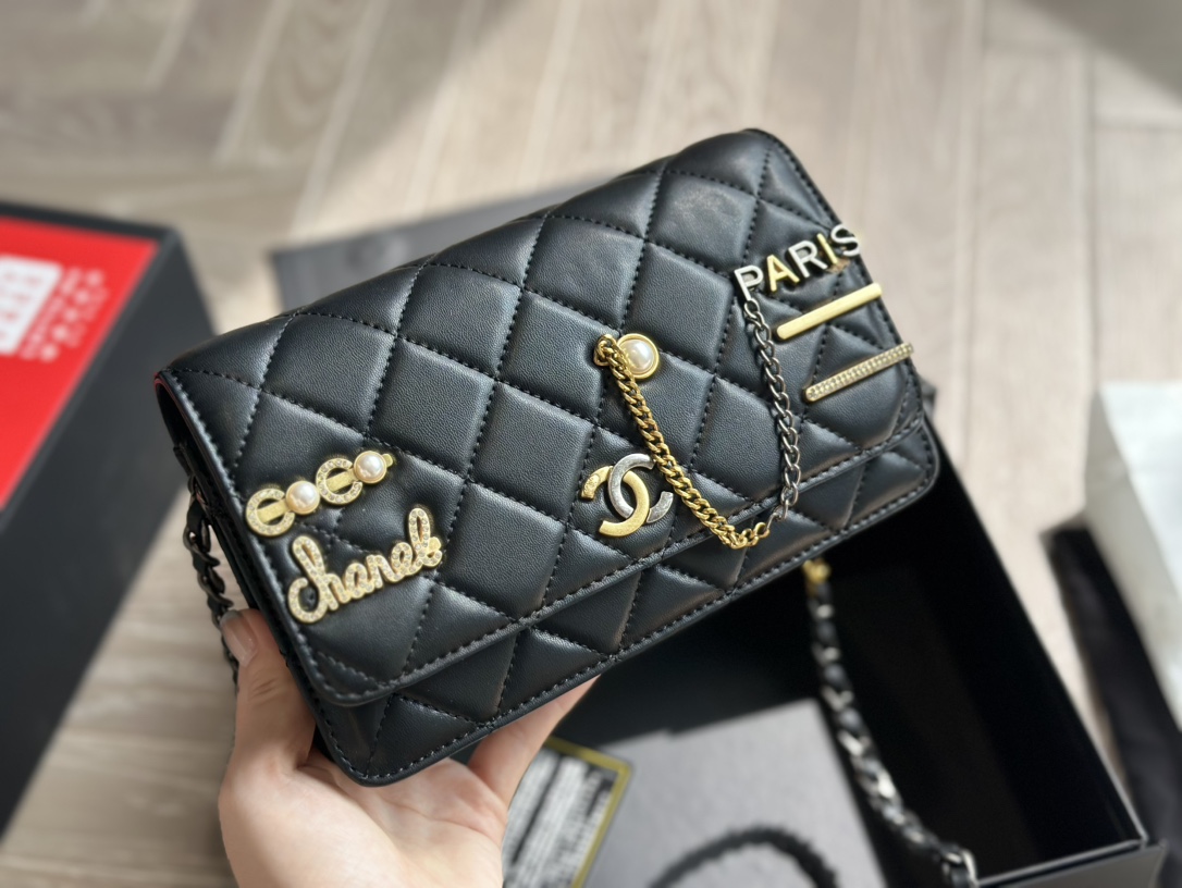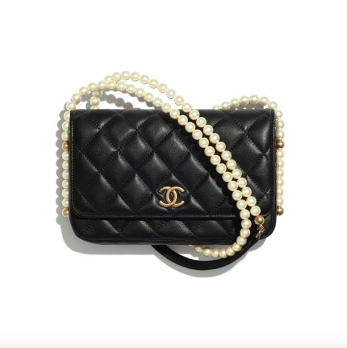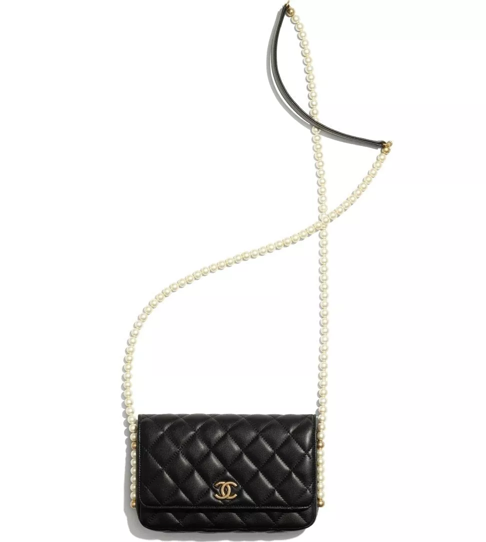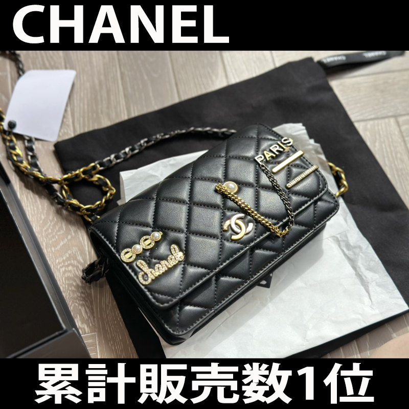 【CHANEL】チェーンウォレット カーフスキン パール ブラック