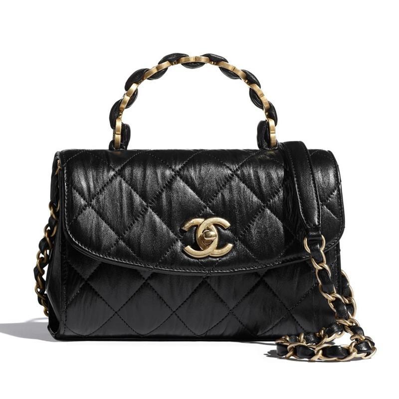 【CHANEL】ハンドル付きミニフラップバッグ ブラック