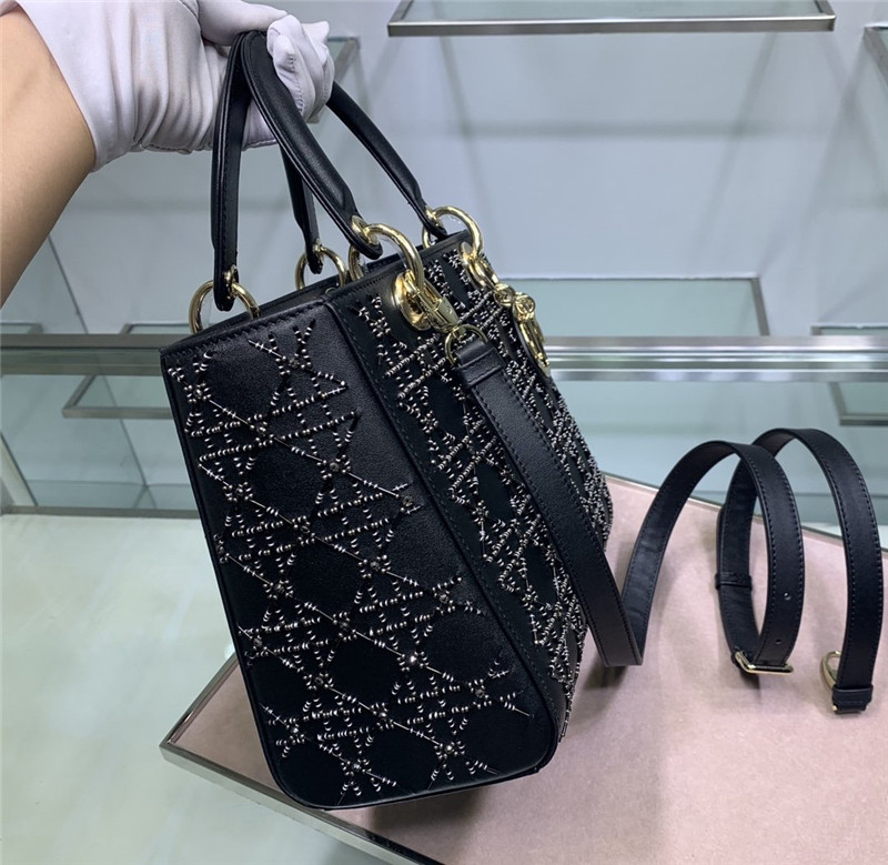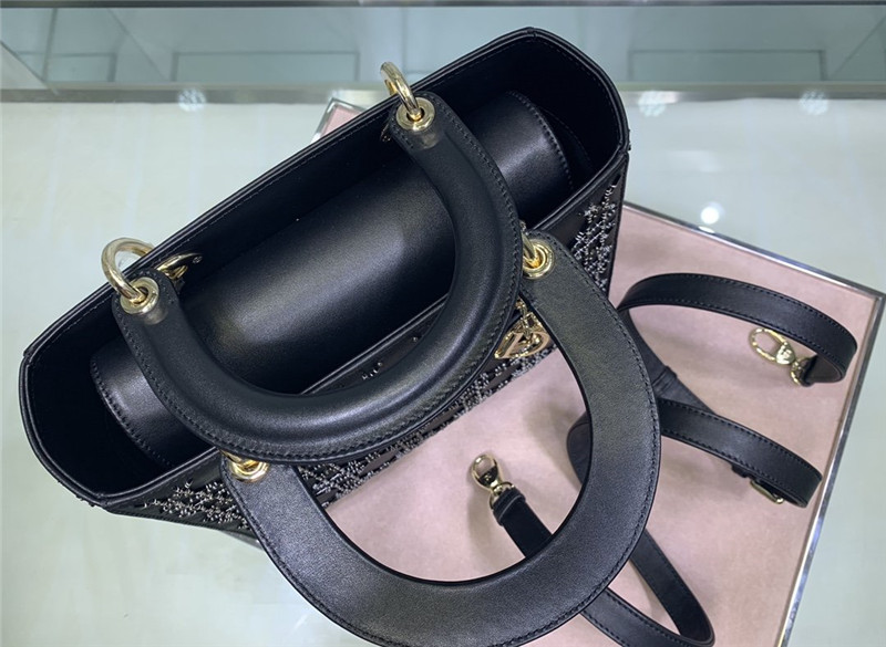lady Dior embroidered bead tube black bag