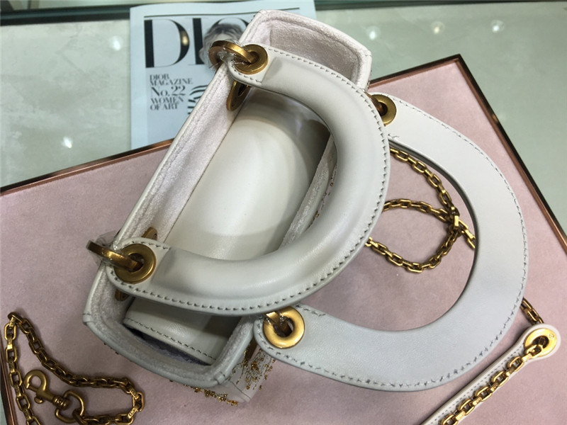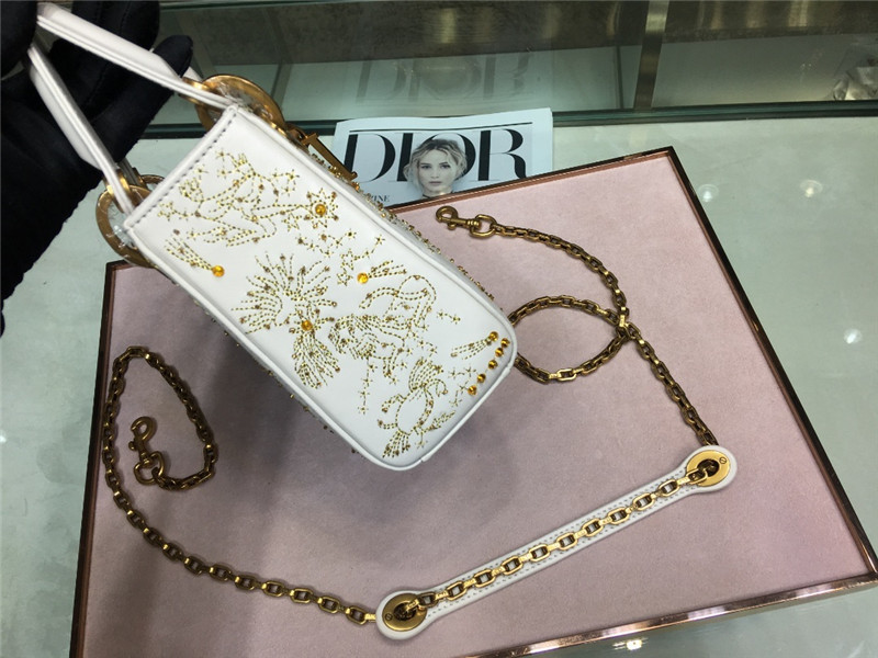 • lady dior mini embroidery moon bag white