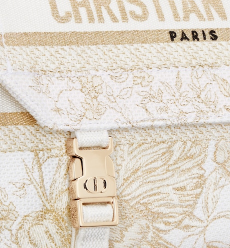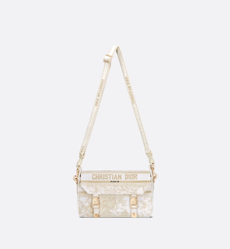 Maria Grazia Chiuri has updated the classic Messenger bag by adding signature Dior details for a relaxed and modern look. It is fully embroidered with the Dior Jardin d'Hiver motif embellished with gold-tone metallic thread. offering a poetic and exotic interpretation of Mr. Dior's wall tapestries. A 'CHRISTIAN DIOR PARIS' signature flap. as well as sportswear-inspired 'CD' buckles complete the design. Equipped with an adjustable and removable shoulder strap. the small. compact Messenger bag can be worn over the shoulder or crossbody. making for an ideal urban companion.