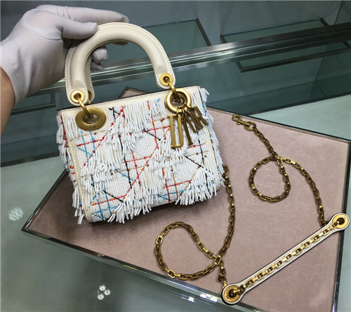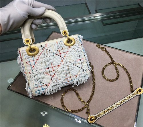 DIOR ブックトート ホワイト D レース バタフライ 刺繍 3D マクラメ エフェクト-M4381