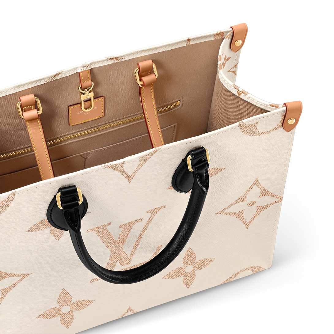 2024クルーズ・ファッションショーに登場した新たなモノグラム・デュンヌ キャンバスの、大容量なトートバッグ「オンザゴー MM」。砂から着想を得た色合いが、モダンでエフォートレスな雰囲気を演出します。コントラストを描くブラックレザーの2本のトップハンドルと、メゾンの伝統的なヌメ革で仕立てた2本のショルダーストラップも魅力。ゴールドカラーのメタルパーツが華やかさを添えます。