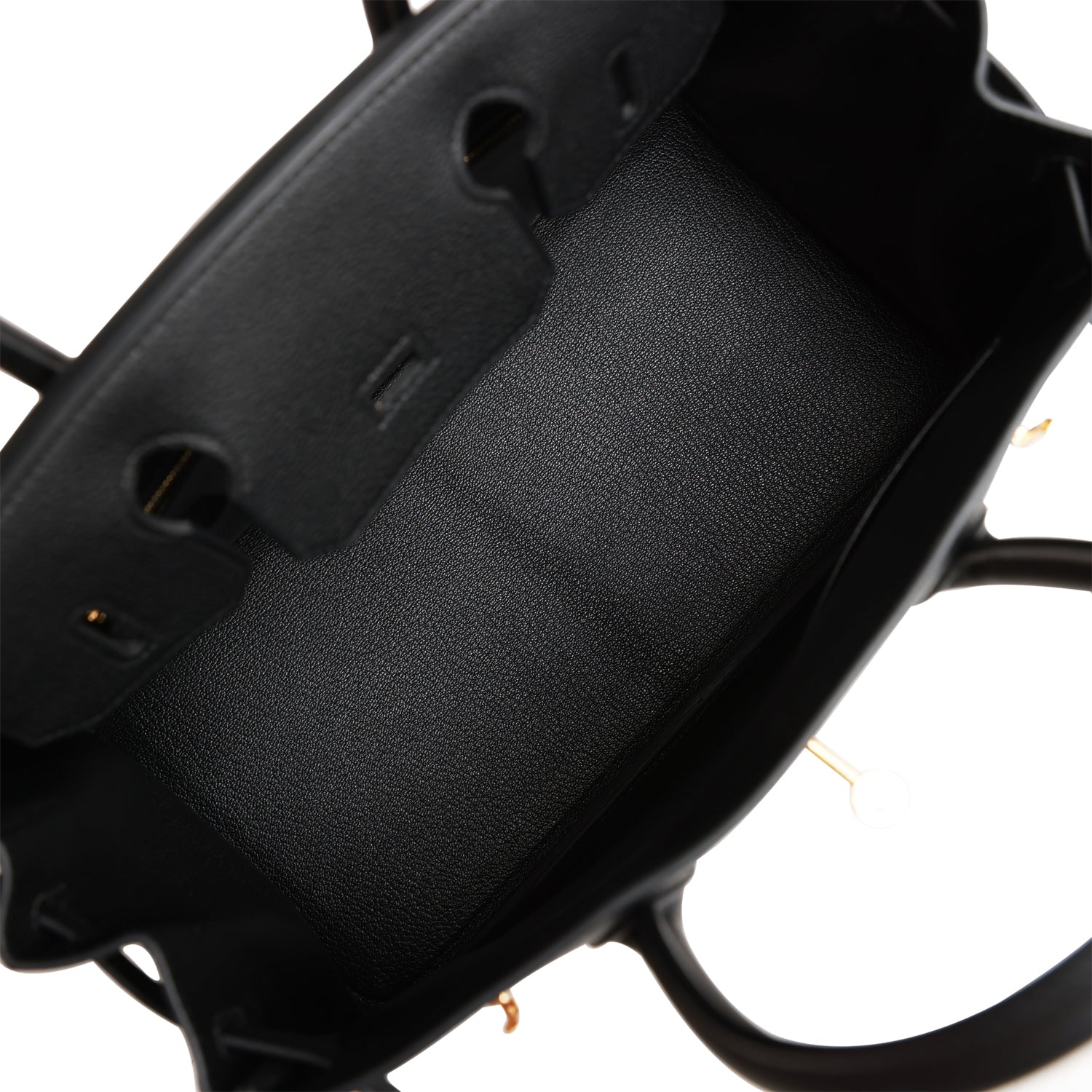 This Birkin is in Black togo leather with gold hardware and has tonal stitching.front flap. two straps with center toggle closure. clochette with lock and two keys. and double rolled handles.