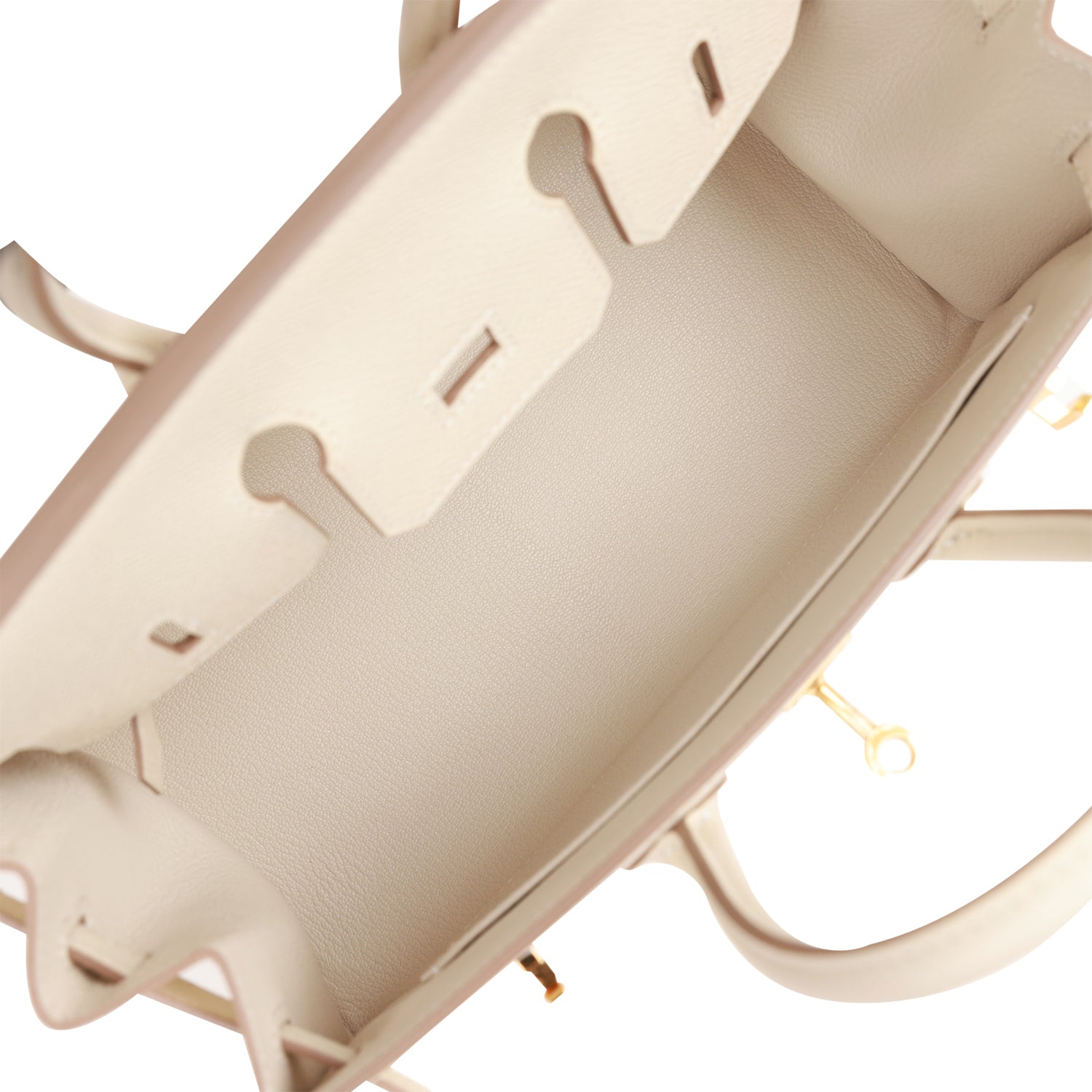 This Sellier Birkin is in Craie epsom leather with gold hardware and has tonal stitching.front flap. two straps with center toggle closure. clochette with lock and two keys. and double rolled handles.