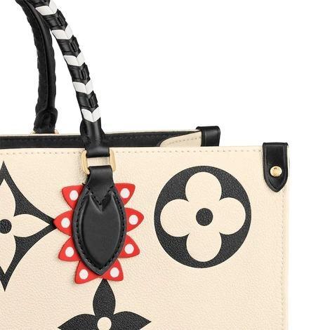 エンボス加工を施したレザーにアイコニックなモノグラム・ジャイアント パターンをあしらったトートバッグ「オンザゴー GM」。編み上げたトップハンドルとハンドルマウントリングに施された目を引くディテールが、ストリートの雰囲気を演出します。内側に複数のポケットを備えた収納力が魅力の、日常使いに最適なアイテムです。 製品仕様 41.0 x 34.0 x 19.0 cm (幅 x 高さ x マチ) 素材:エンボス加工を施したグレインレザー(皮革の種類:牛革) トリミング:グレインレザー(皮革の種類:牛革) ライニング:マイクロファイバー ファスナー式内フラットポケット 内フラットポケットx2 ハンドルダブル