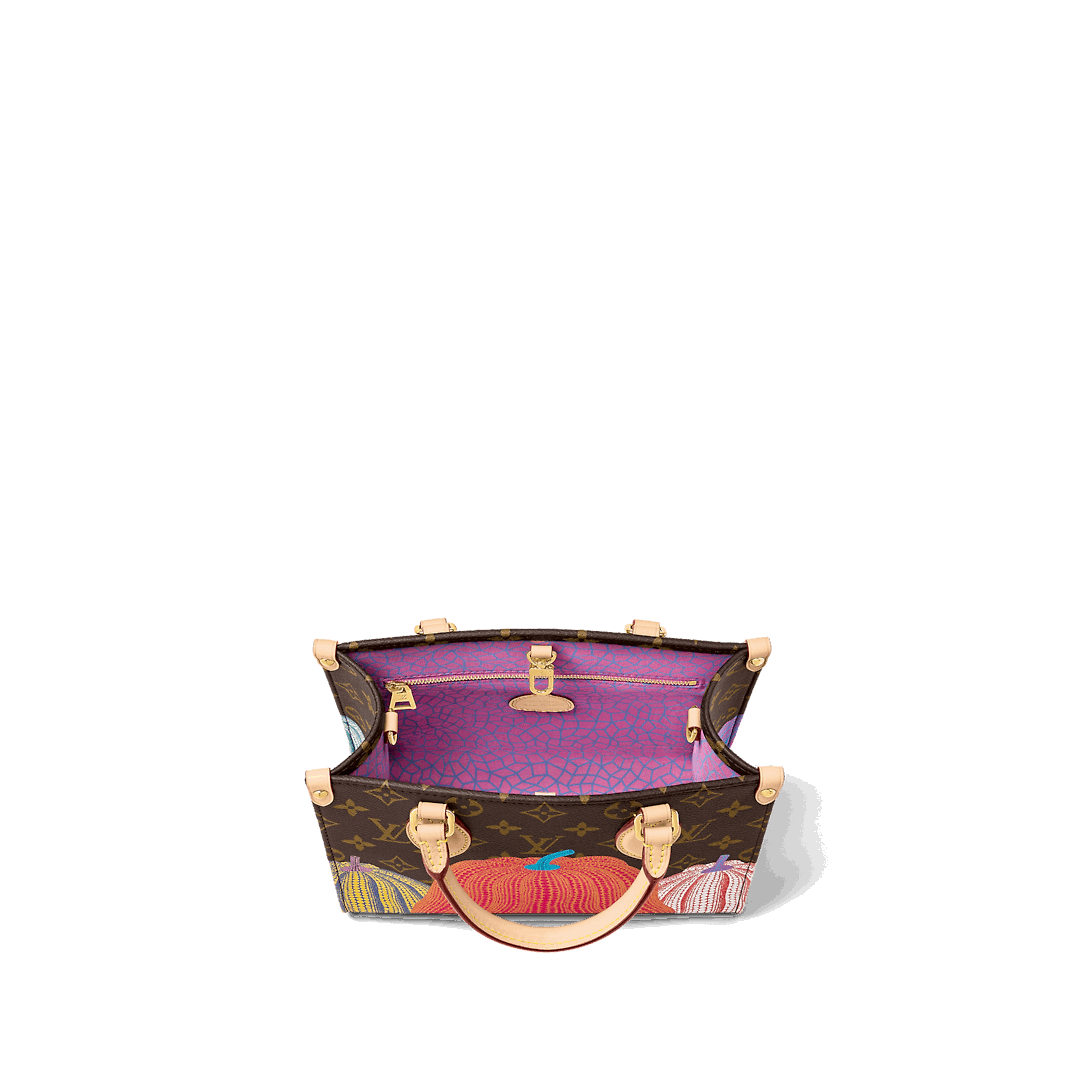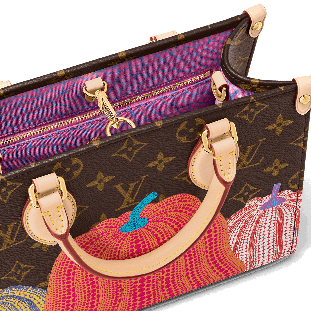 「ルイ・ヴィトン × 草間彌生」コレクションに登場した「LV × YK オンザゴー PM」。日本人アーティスト 草間彌生のエスプリを、ユニークでクリエイティビティ溢れるプリントで表現しました。自らのほとばしるエネルギーと情熱を象徴する視覚的なシグネチャーとして、カボチャを用いてきた草間。モノグラム・キャンバスに温かみのある色合いのパンプキンをあしらった、使い心地の良いバッグです。ストラップには、「パンプキン」のモチーフのプリントを添えた取り外し可能なコインパース付き。