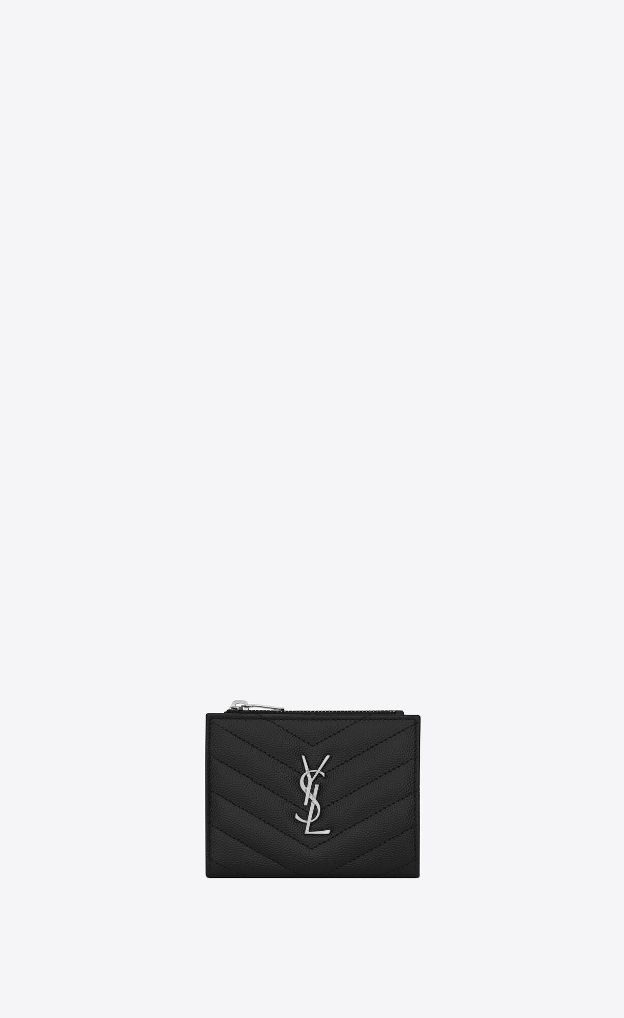 【SAINT LAURENT】モノグラム マルチフォールドウォレット(グレインドプードル/エンボスレザー)