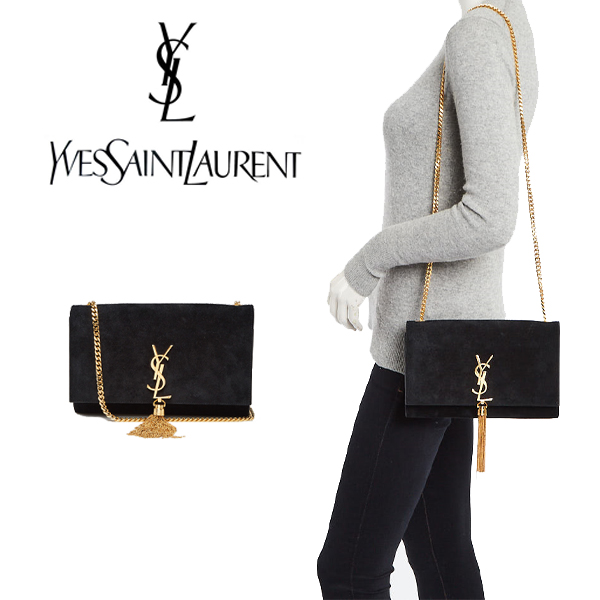 イヴサンローラン ブラック スエード モノグラム ミディアム ケイト タッセル バッグ
